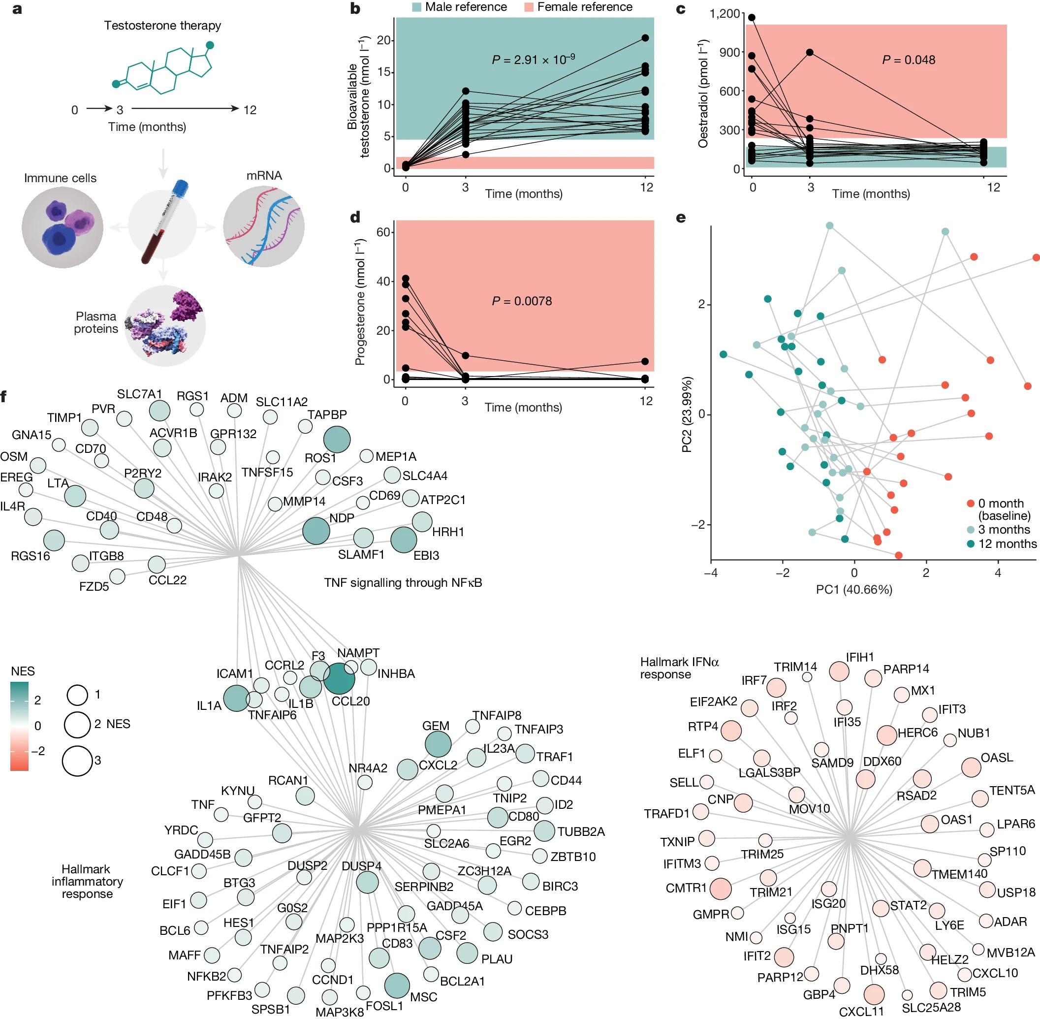 В данной работе мы провели продольный системный анализ у 23 транс-мужчин и обнаружили, что тестостерон модулирует перекрестно-регулируемую ось между интерфероном I типа и фактором некроза опухоли. Это опосредовано функциональным ослаблением ответа интерферона I типа как в плазмоцитоидных дендритных клетках, так и в моноцитах. Напротив, тестостерон усиливает реакцию моноцитов, что приводит к повышению продукции фактора некроза опухоли, интерлейкина-6 и интерлейкина-15, а также к активации генов, регулируемых ядерным фактором каппа B, и усилению реакции интерферона-γ, в первую очередь в естественных киллерах. Эти результаты, полученные у трансгендерных мужчин, подтверждаются данными о реакциях, различающихся в зависимости от пола, в общедоступных базах данных и иллюстрируют динамическую регуляцию иммунитета человека половыми гормонами, что имеет значение для здоровья людей, проходящих гормональную терапию, и для нашего понимания различий в иммунных реакциях у цисгендерных людей, различающихся в зависимости от пола.