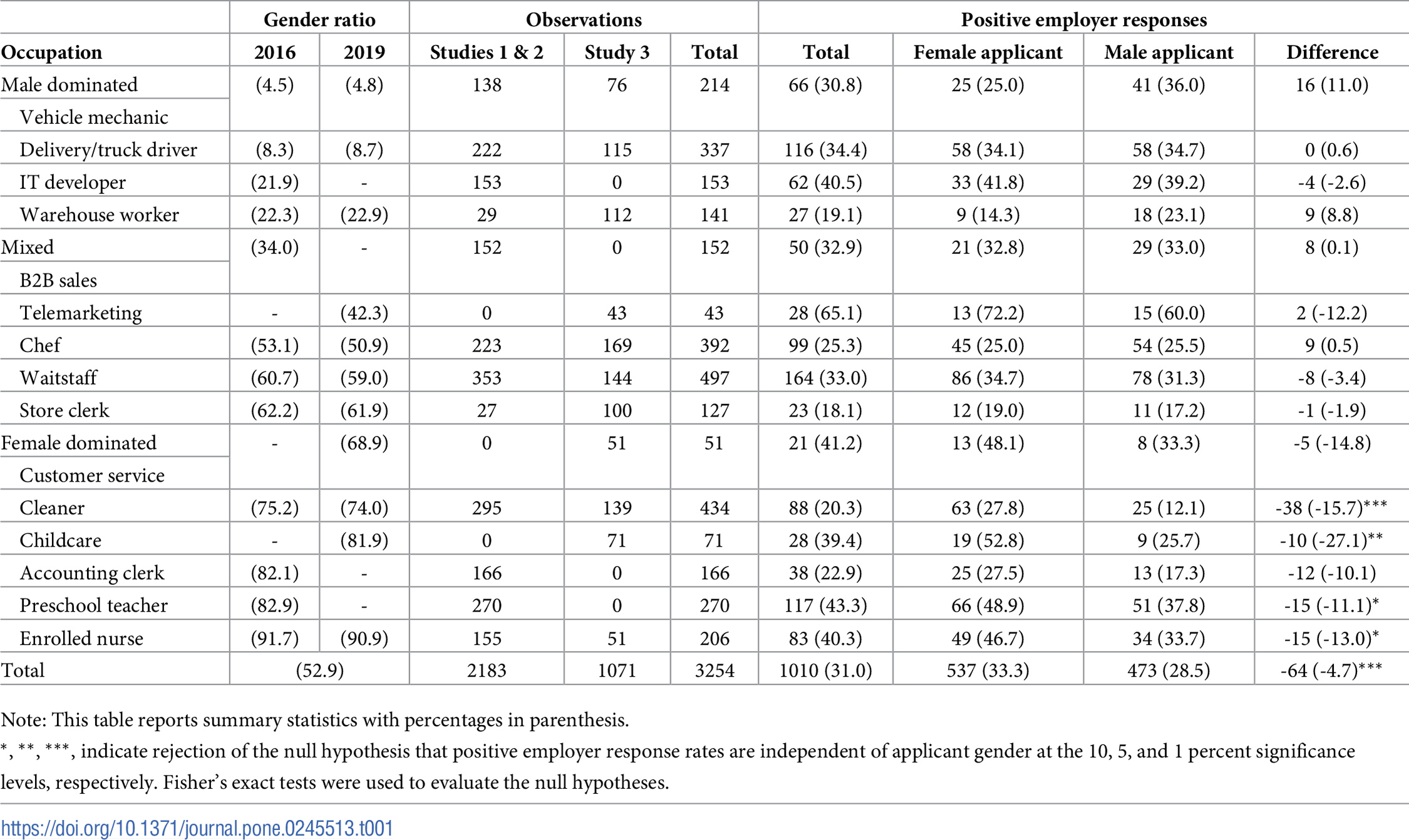 Мы оценили степень гендерной дискриминации в Швеции в разных профессиях, используя заочный метод исследования. Наш анализ ответов работодателей на более чем 3200 фиктивных заявлений о приеме на работу по 15 профессиям показал, что общий уровень положительных ответов работодателей был выше для женщин почти на 5 процентных пунктов, чем для мужчин.