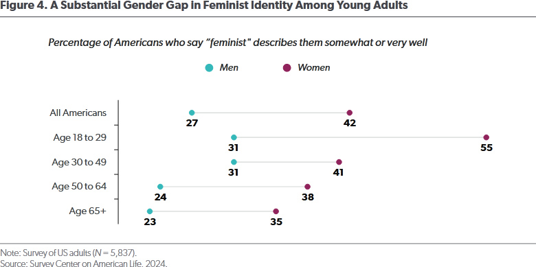 - 31% мужчин в возрасте от 18 до 29 лет идентифицируют себя как феминисты