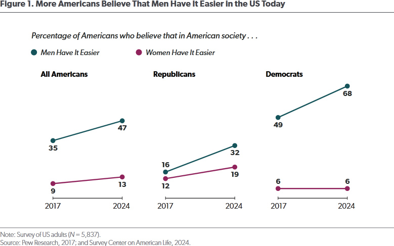 Исследовательский центр Пью, 2017 г.; и Американское исследование гендера и общества, 2024 г.