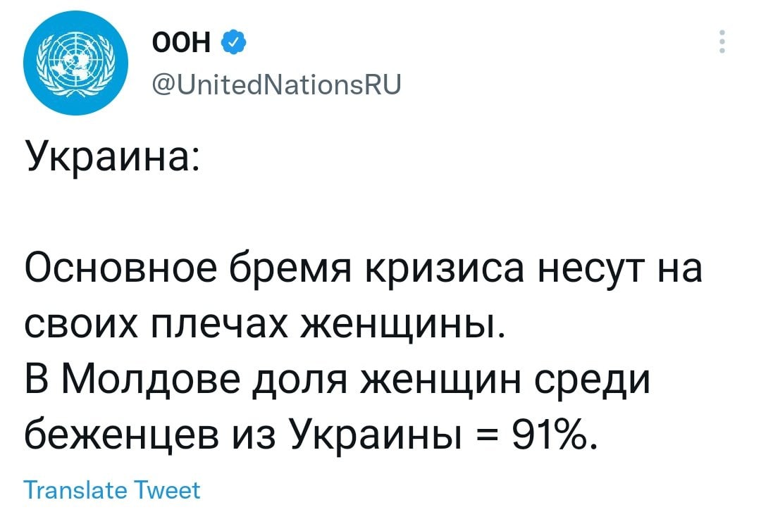 - 58. ↑ Основное бремя кризиса несут на своих плечах женщины. В Молдове доля женщин среди беженцев из Украины = 91% — официальный аккаунт ООН UnitedNationsRU на x.com