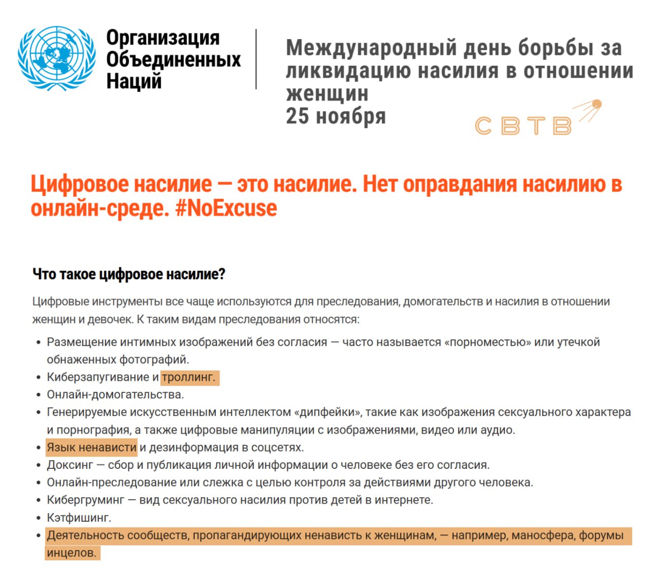 - 59. ↑ Цифровое насилие стремительно распространяется, особенно остро затрагивая женщин и девочек.— UnitedNationsRU