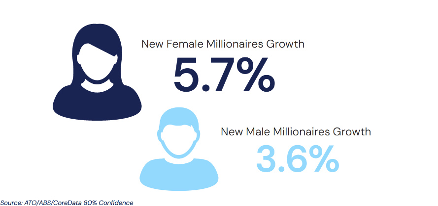 По оценкам инвестиционной компании, в следующем десятилетии женщины в австралии получат в наследство $3,2 триллиона [13], в том числе из-за того, что жёны часто живут дольше мужей и наследуют их имущество, а в обратном случае реже оставляют наследство мужьям [10].