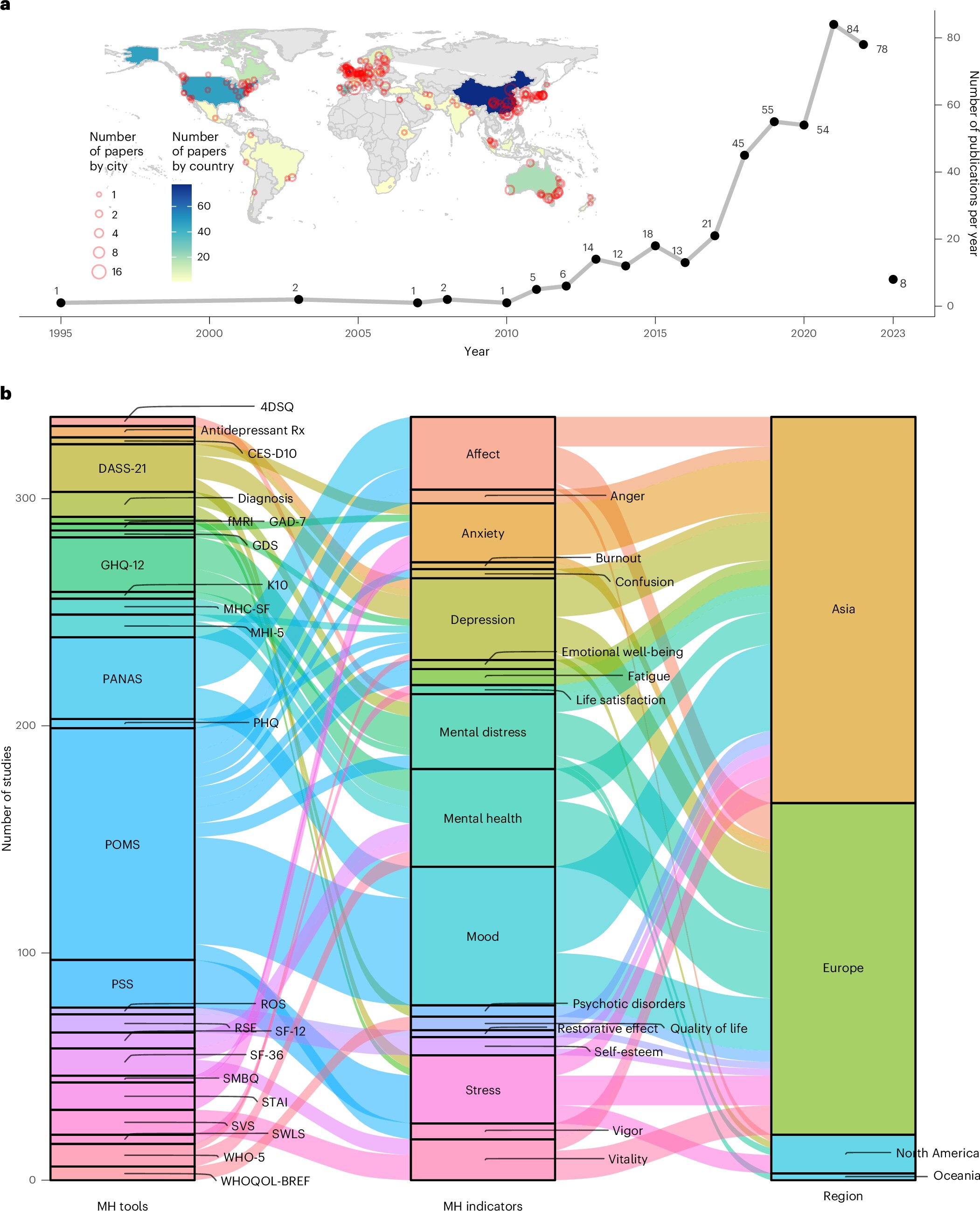 Психические расстройства чаще встречаются в городах, однако глобальное влияние городской природы на психическое здоровье остается недостаточно изученным. В данной работе мы восполняем этот пробел, систематически изучая 449 рецензируемых исследований и проводя метаанализ 78 полевых экспериментов для количественной оценки влияния различных типов городской природы на 12 показателей психического здоровья. Наш метаанализ показывает, что воздействие городской природы обеспечивает существенные преимущества для широкого спектра показателей психического здоровья. Зеленые пространства, такие как городские леса и парки, стали ключевыми элементами в смягчении негативных настроений, таких как депрессия и тревожность, и улучшении общего психического благополучия. В частности, преимущества воздействия природы наиболее выражены среди молодых людей, хотя устойчивые положительные эффекты очевидны во всех возрастных группах. Эти результаты подчеркивают важность сохранения и расширения доступа к городской природе как ключевой стратегии для улучшения общественного здоровья и благополучия в городах по всему миру.