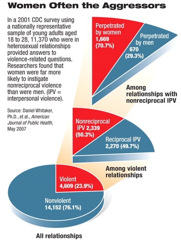 Исследование показало что когда речь идёт о невзаимном насилии между интимными партнёрами, чаще всего виноваты женщины.
