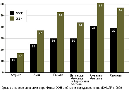 Женщины живут дольше мужчин почти во всех странах. Предполагается, что в среднем, женщины живут на 4 - 6 лет больше, чем мужчины. Средняя продолжительность жизни (среднее количество лет, которое человек проживет с момента рождения) мужчин — 66,1 года. Продолжительность жизни женщин — 70,5 лет [1] {Кто живет дольше — un.org}. В России, по заявлениями челнов правительства, мужчины живут в среднем на 10 лет меньше [3], однако социалоги называли и большие цифры, от 12 до 15 лет разницы