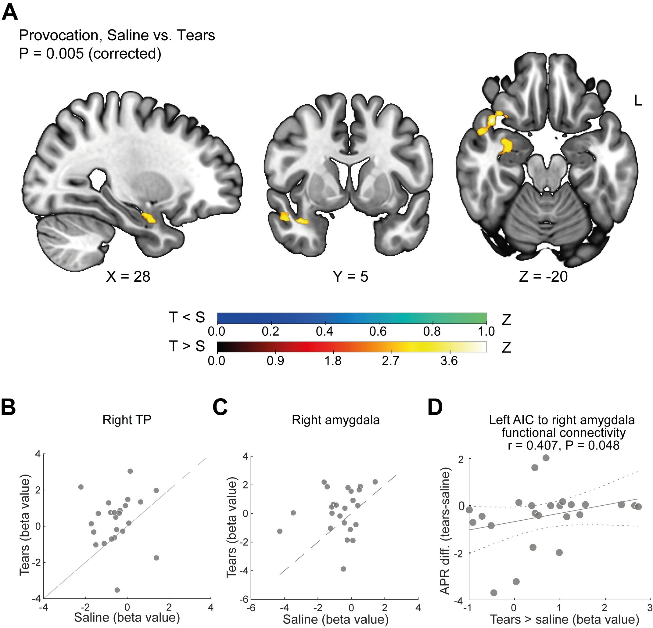 Наконец, чтобы исследовать центральные мозговые субстраты этого эффекта, мы повторили эксперимент одновременно с функциональной визуализацией мозга. Мы обнаружили, что нюхание слез увеличивает функциональную связь между нейронными субстратами обоняния и агрессии, снижая общий уровень нейронной активности в последнем.