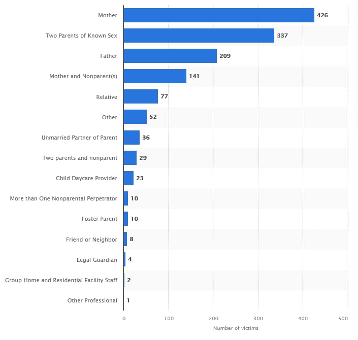 Статистика по числу смертельных случаев потомства от насилия со стороны близких, родитеелй или опекунов (США)