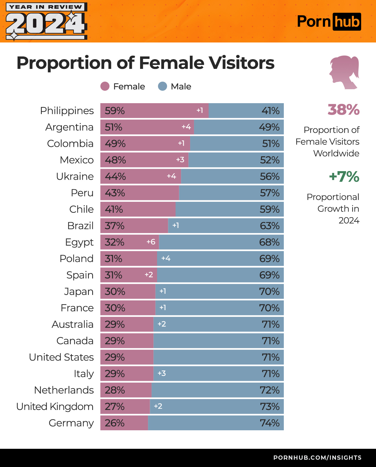 Ежегодный анализ статистики Порнохаба публикует Порнохаб — один из популярнейших порно сайтов, содержит предпочтениях в просмотре порно на сайте в 2024 году, предоставлоены срезы по темам, странам, а также мужчинам и женщинам