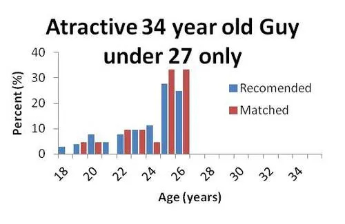 Автор решил сделать «Привлекательного Парня» 34 лет и «Непривлекательного Парня» 26 лет, чтобы посмотреть, насколько вредно быть старше средней девушки в Tinder для процента совпадений.